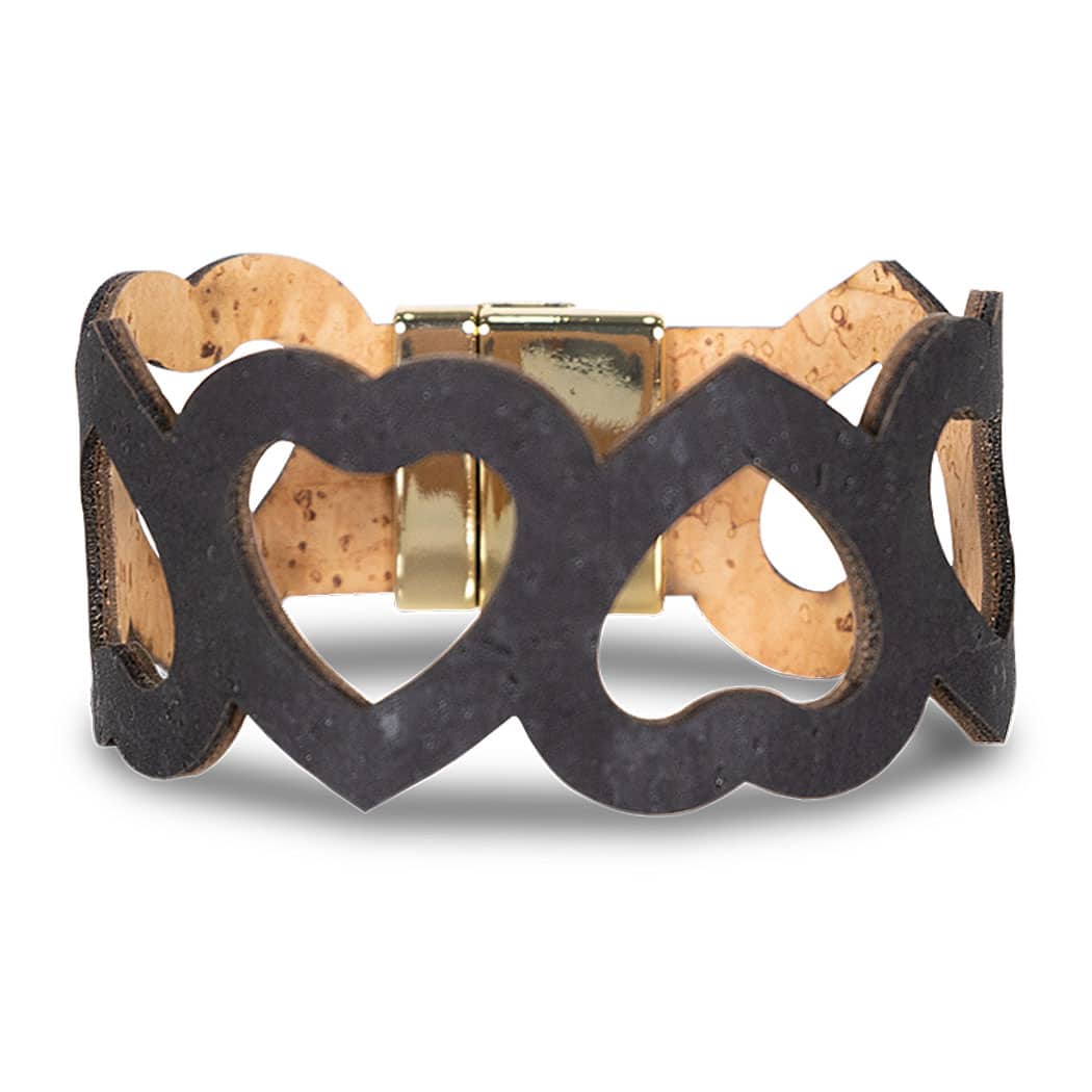 Armband aus Kork «Big Hearty» schwarz von Artipel mit goldenem Magnetverschluss.