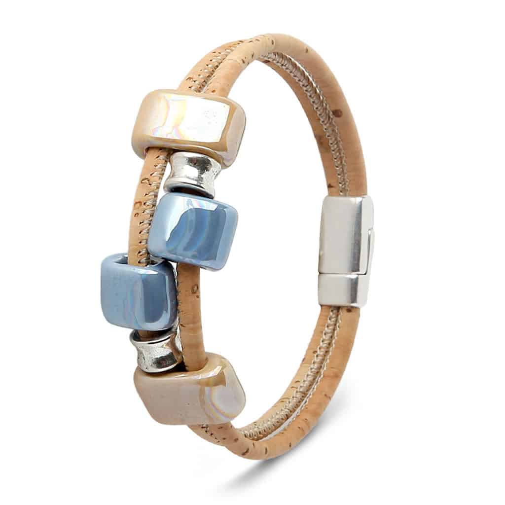 Armband aus Kork «Grenada» von Artelusa mit Keramik sowie Magnetverschluss.