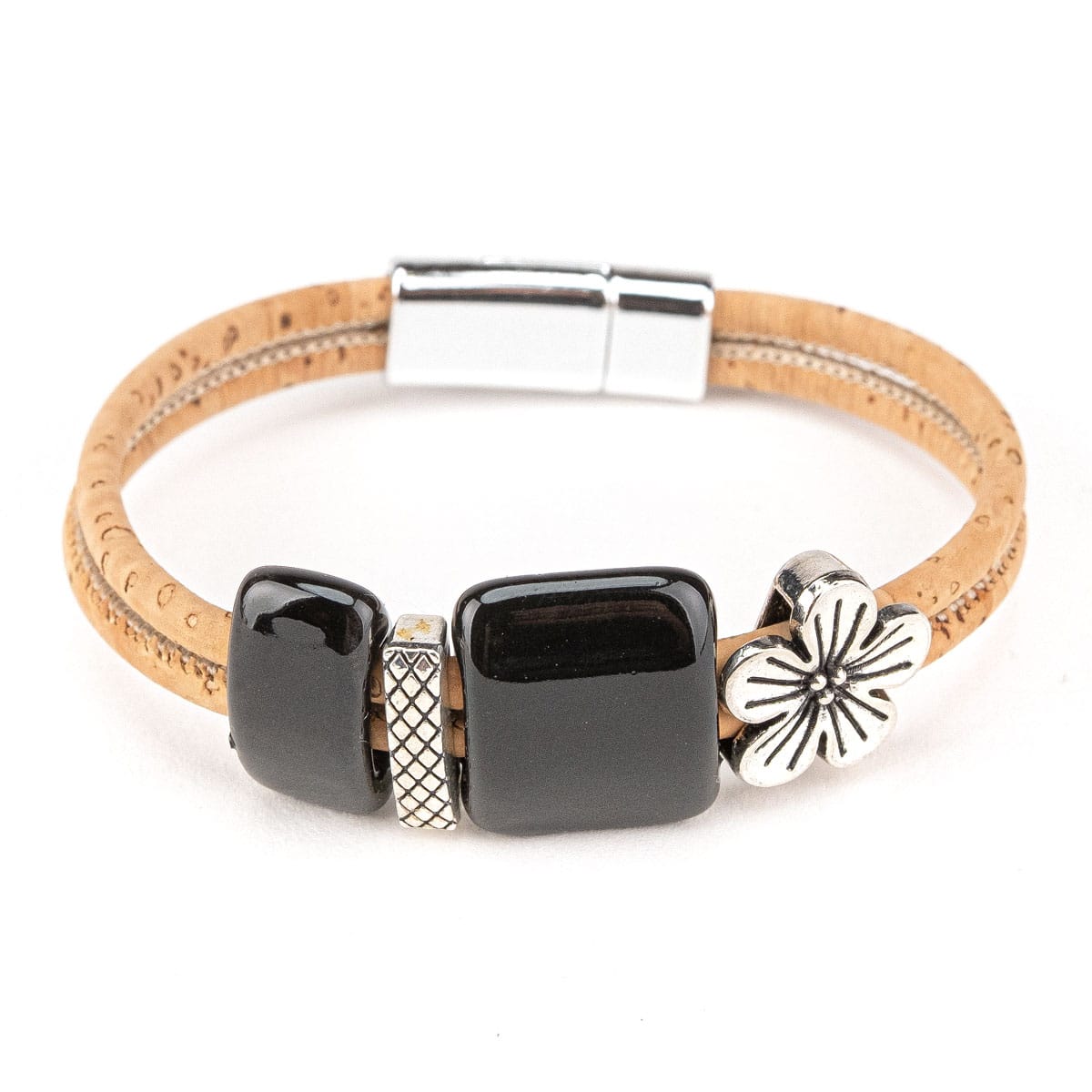 Armband aus Kork «Preto Flor» mit schönen Details sowie Zamac-Verschluss.