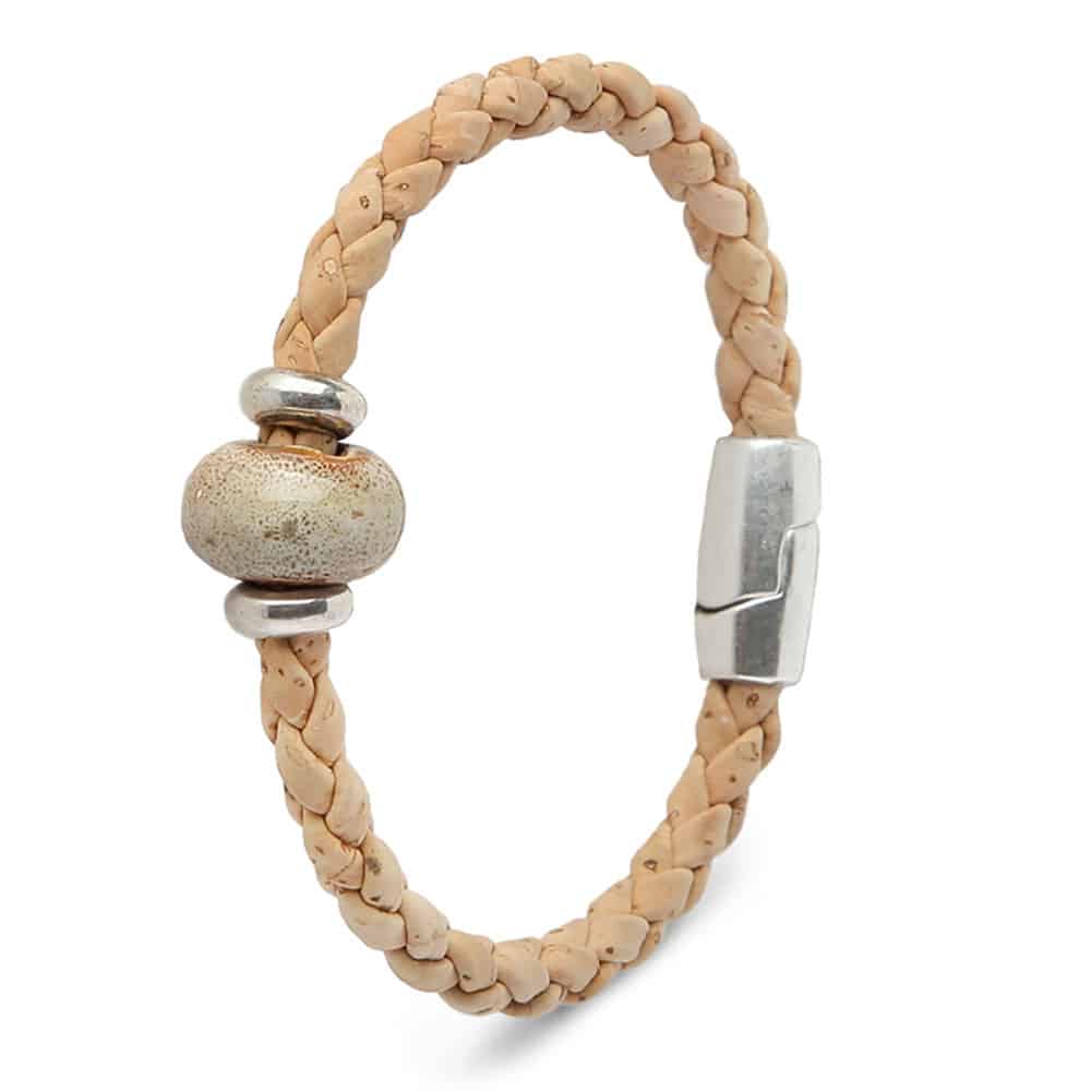 Armband «Braid» aus Kork von Artelusa mit Keramik sowie Magnetverschluss.