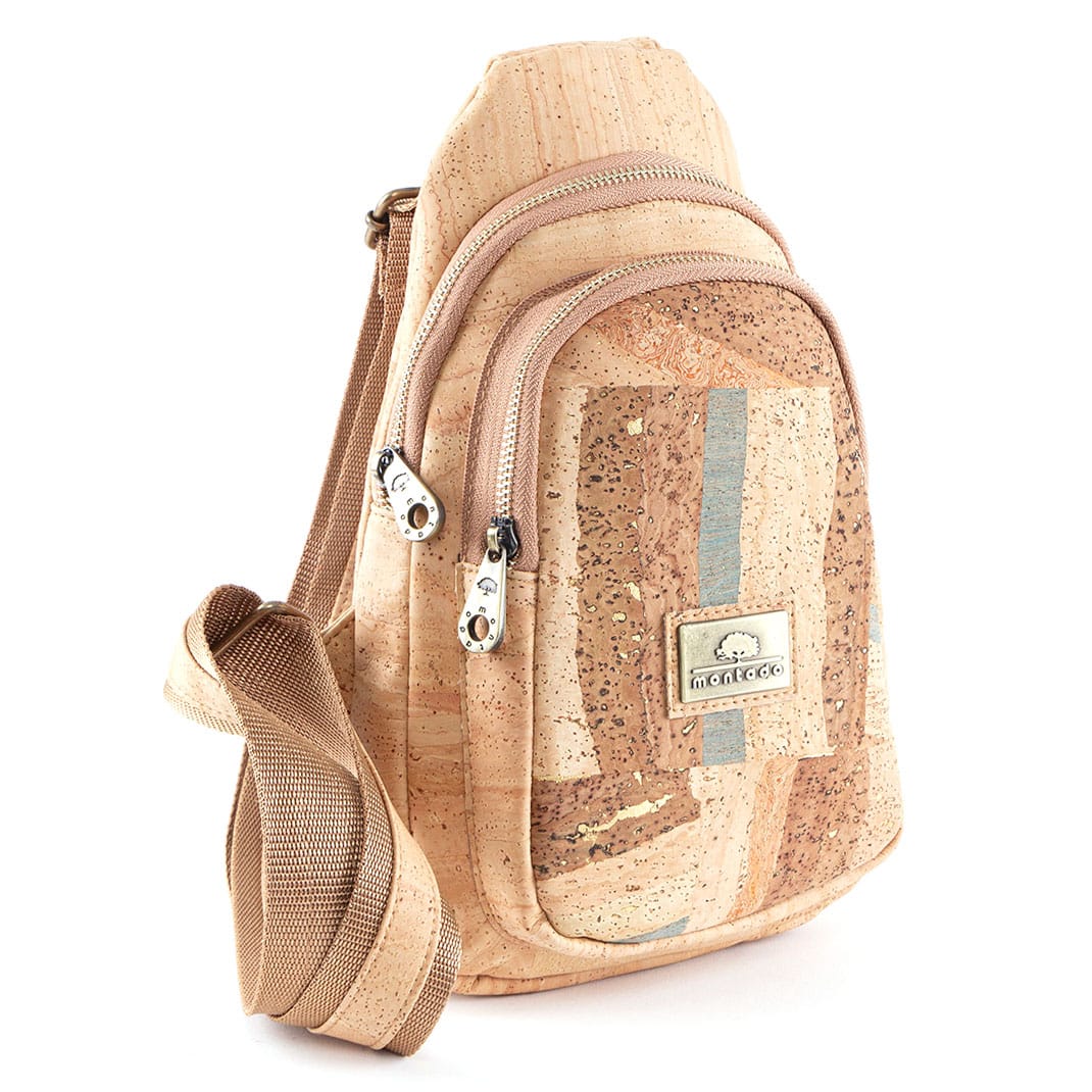 Leichte Brusttasche aus Kork «Parquet» von Montado mit verstellbarem Trageriemen sowie Reissverschlussfächern.