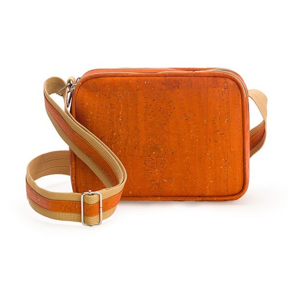 Crossbody-Korktasche «One» orange von Artelusa. Nachhaltige Umhängetasche aus Kork mit zwei grossen Hauptfächern.