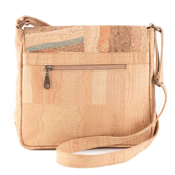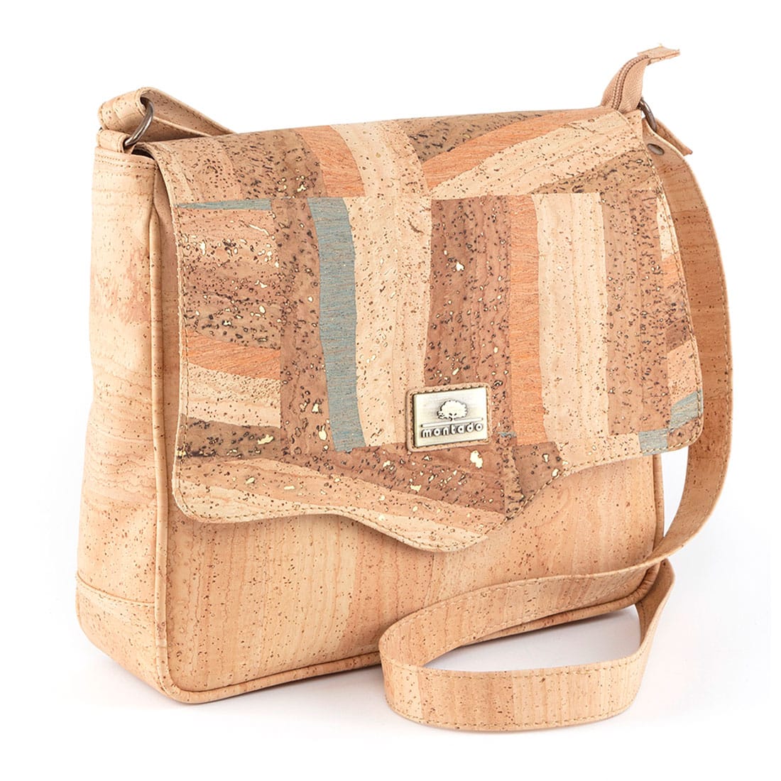 Crossbodytasche aus Kork «Big Parquet Flap» von Montado mit verstellbarem Trageriemen sowie Schutzklappe.