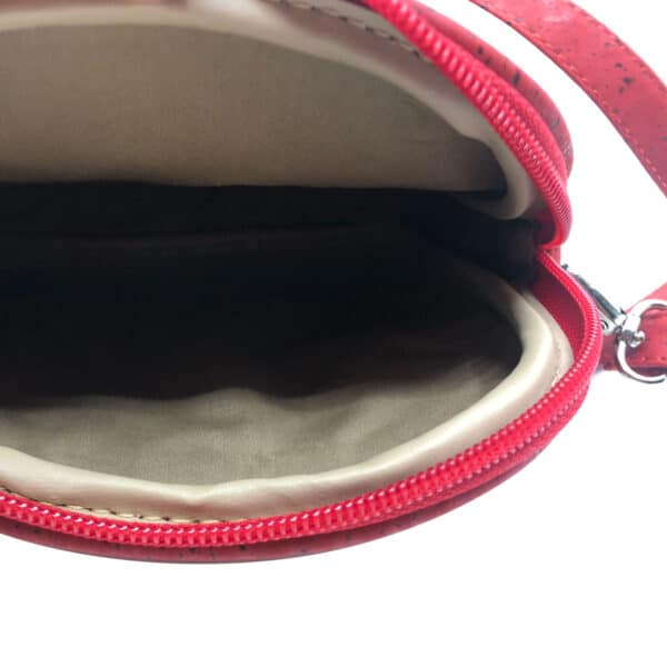 Crossbodytasche aus Kork «Faro» rot. Kleine Umhängetasche mit Reissverschluss für dein Handy sowie Geldbeutel.