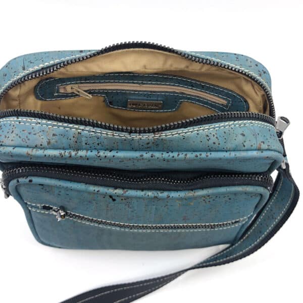 Diese Crossbodytasche «Correo» Azul aus Kork (Marla Pais) hat eine praktische Grösse sowie genügend Fächer.