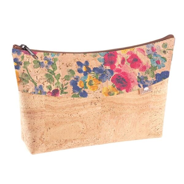 Damen Kosmetiktasche aus Kork «Flores» von Montado. Grosses Kosmetiketui aus Kork mit Reissverschluss und schönem Blumenmuster.