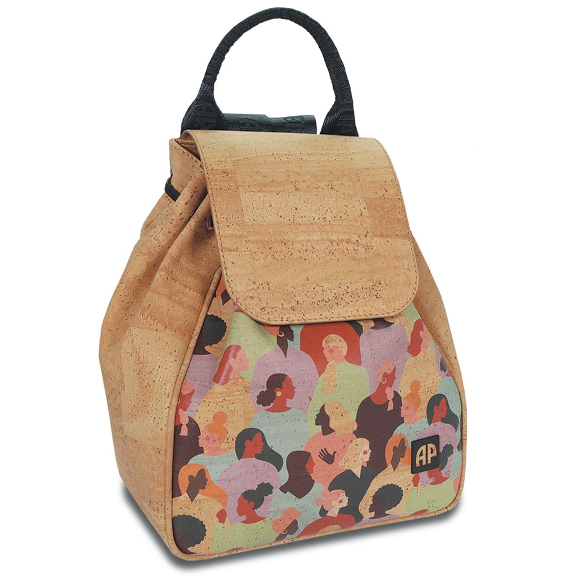 Damenrucksack aus Kork «Woman» von Artipel mit farbenfrohem Frauenmuster auf der Frontseite.
