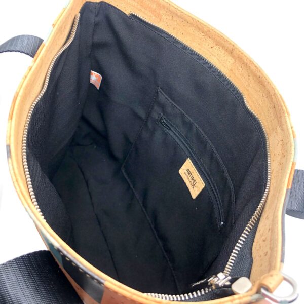 Damentasche aus Kork «Woman» von Artipel mit farbenfrohem Frauenmuster auf den Aussenseiten.