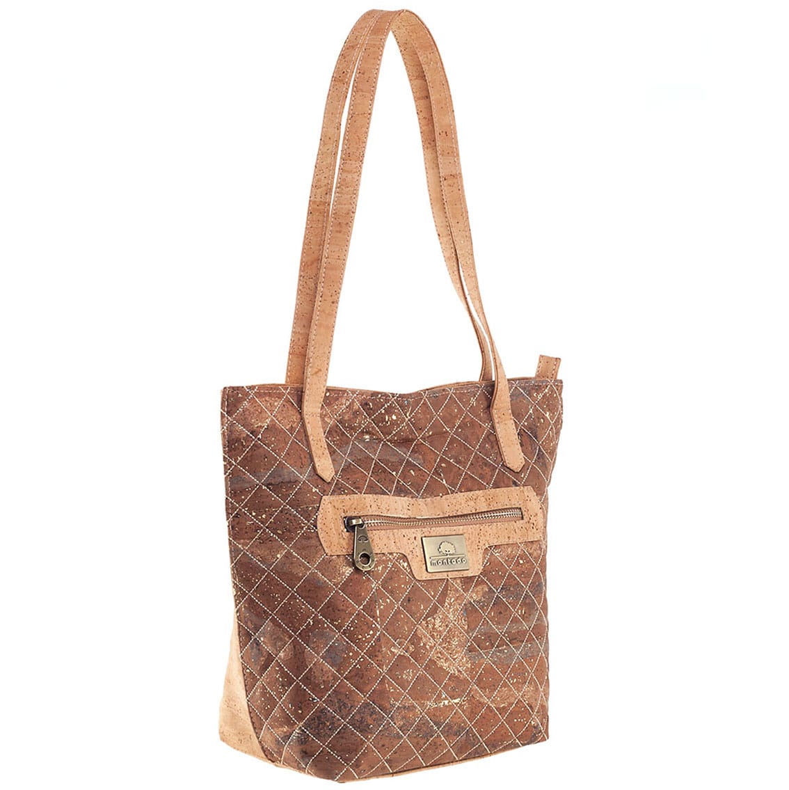 Damentasche aus Korkstoff «Chinchina» von Montado, mit braun eingefärbtem Kork sowie goldenen Einschlüssen.