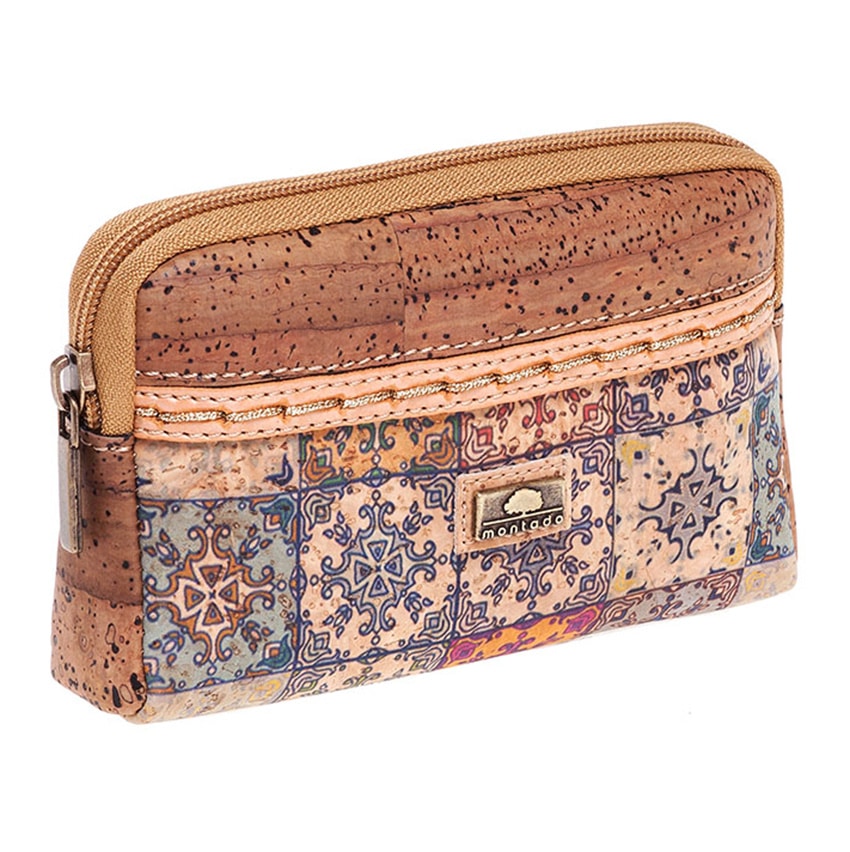 Azulejos-Muster kombiniert mit natürlichen Brauntönen. Haupt- und Seitenfach mit Reissverschluss.