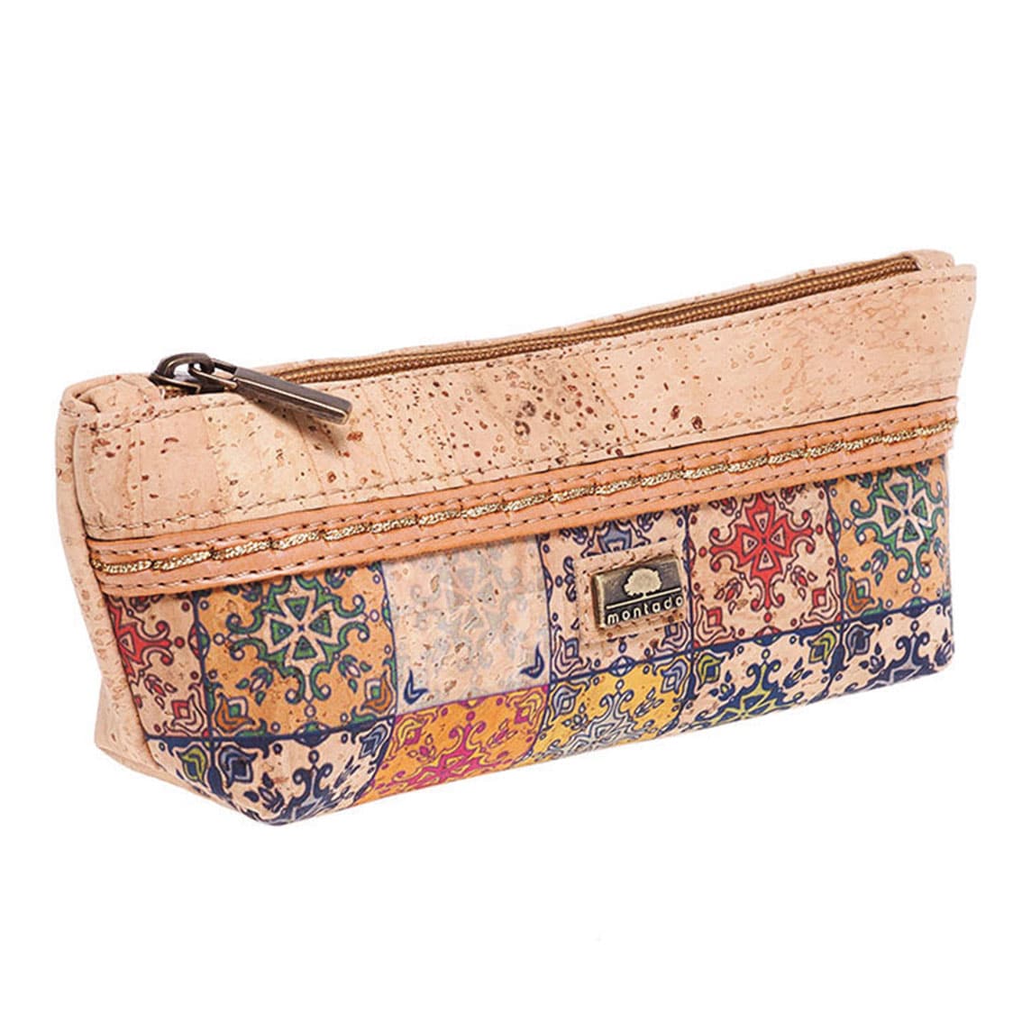 Das Etui «Mosaico» natur aus Korkstoff von Montado kombiniert die natürliche Korkfarbe mit Mosaik-Mustern.