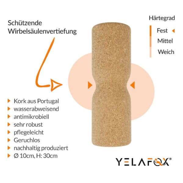 Die Faszienrolle aus Kork von Yelafox hat eine Rille im der Mitte und schont damit die Wirbelsäule.