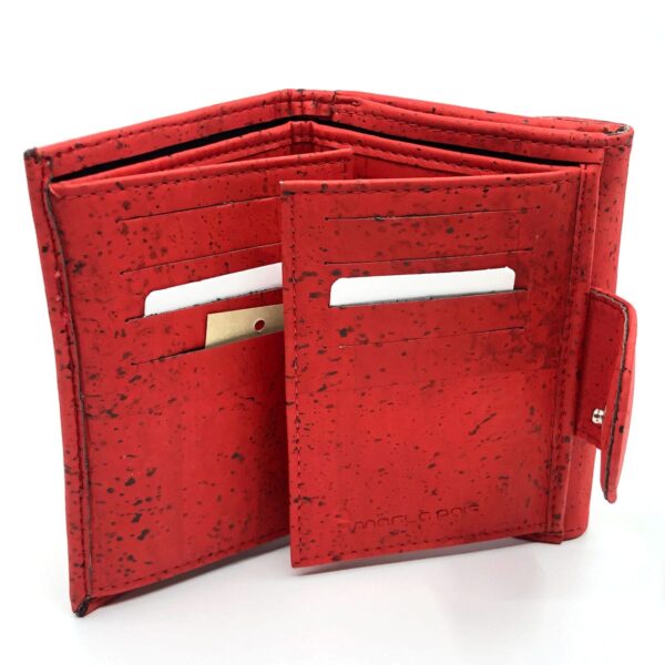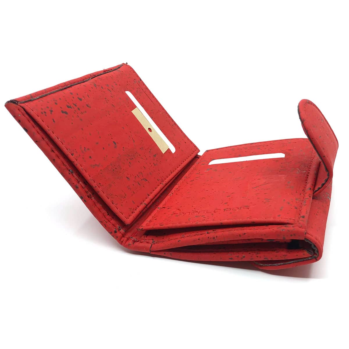 Die Geldbörse aus Kork «Moeda» rot (Marla Pais) hat eine perfekte Grösse mit sehr viel Platz für Karten, Münzen sowie Scheine.