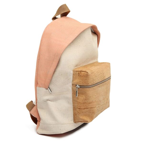 Grosser veganer Rucksack für Damen «Grande» aus Kork von Artelusa mit weiss sowie rosa eingefärbtem Korkleder. Viel Platz für Computer oder Reiseutensilien.