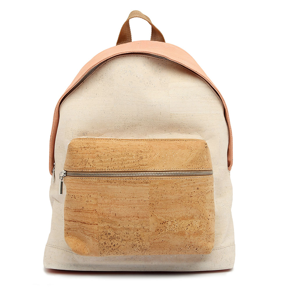 Grosser veganer Rucksack für Damen «Grande» aus Kork von Artelusa, mit weiss sowie rosa eingefärbtem Korkleder. Viel Platz für Computer oder Reiseutensilien.