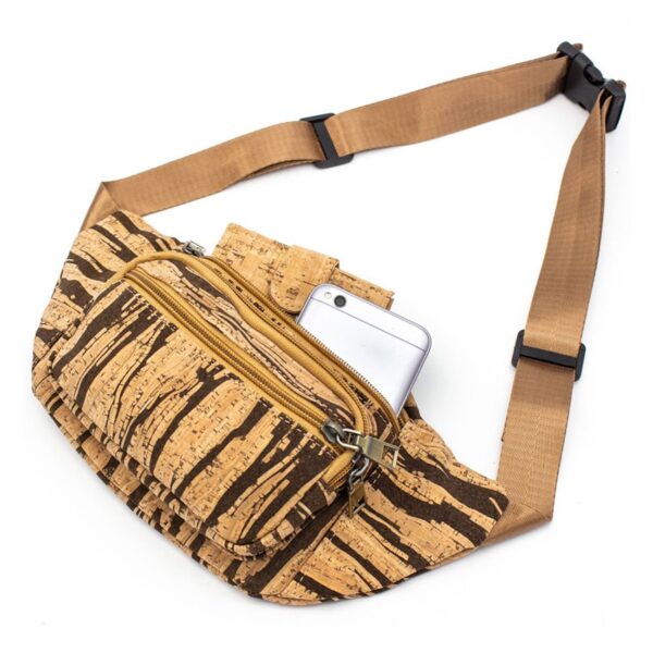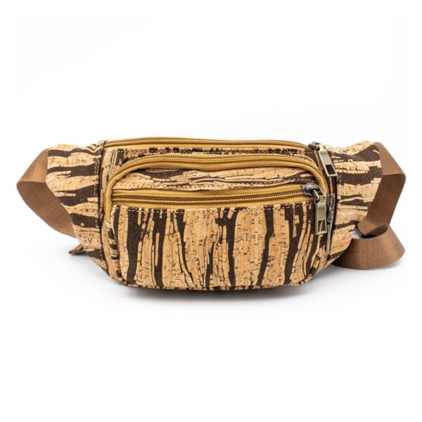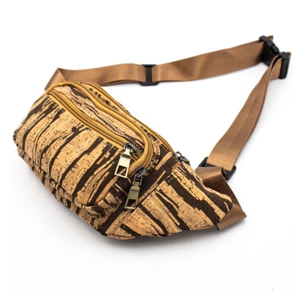 Gürteltasche «Dark Stripe» aus Kork von MB Cork. Deine natürliche Bauchtasche für unterwegs. 3 Reissverschlusstaschen mit Platz für deine Brieftasche sowie Handy usw.