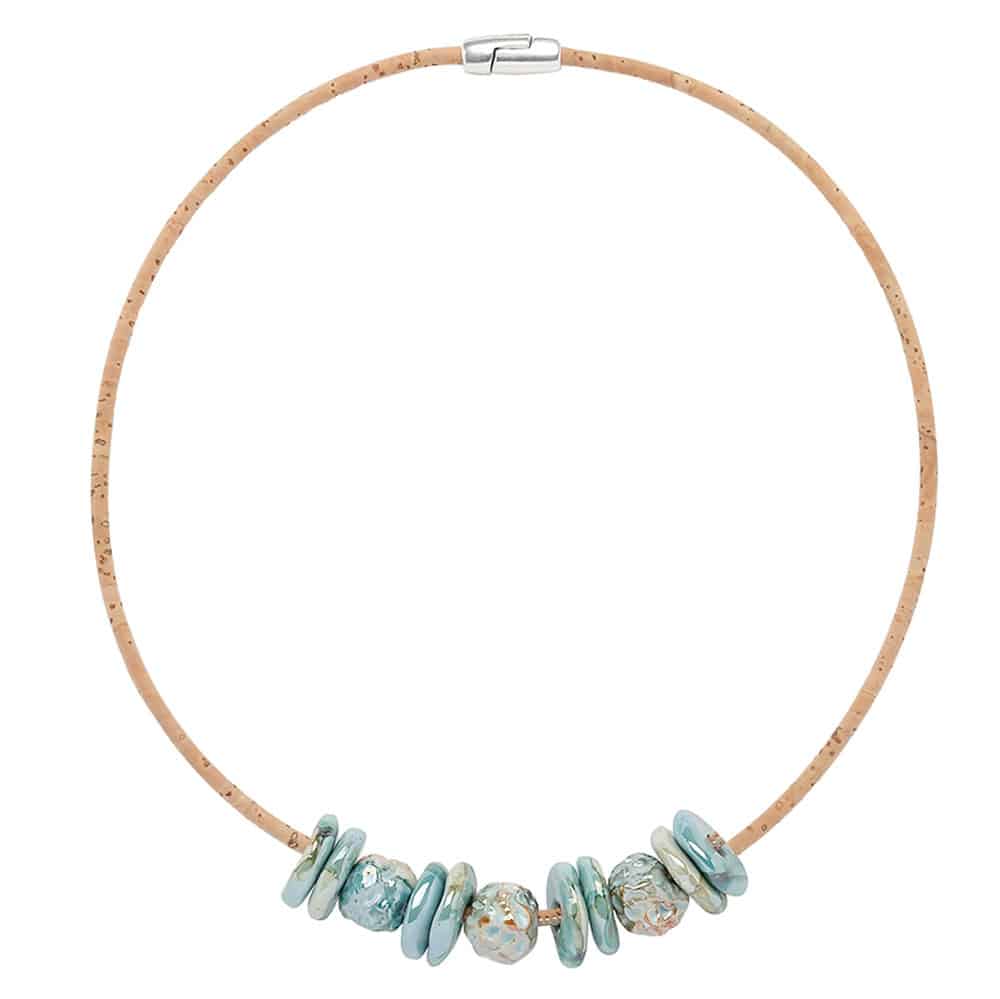 Halskette aus Kork «Azul Claro» von Artelusa mit Keramik sowie Magnetverschluss.