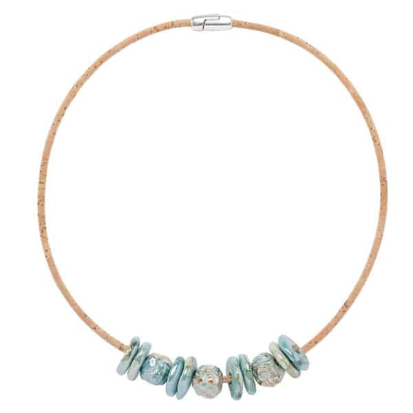 Halskette aus Kork «Ceramica Beige» von Artelusa mit Keramik sowie Magnetverschluss.
