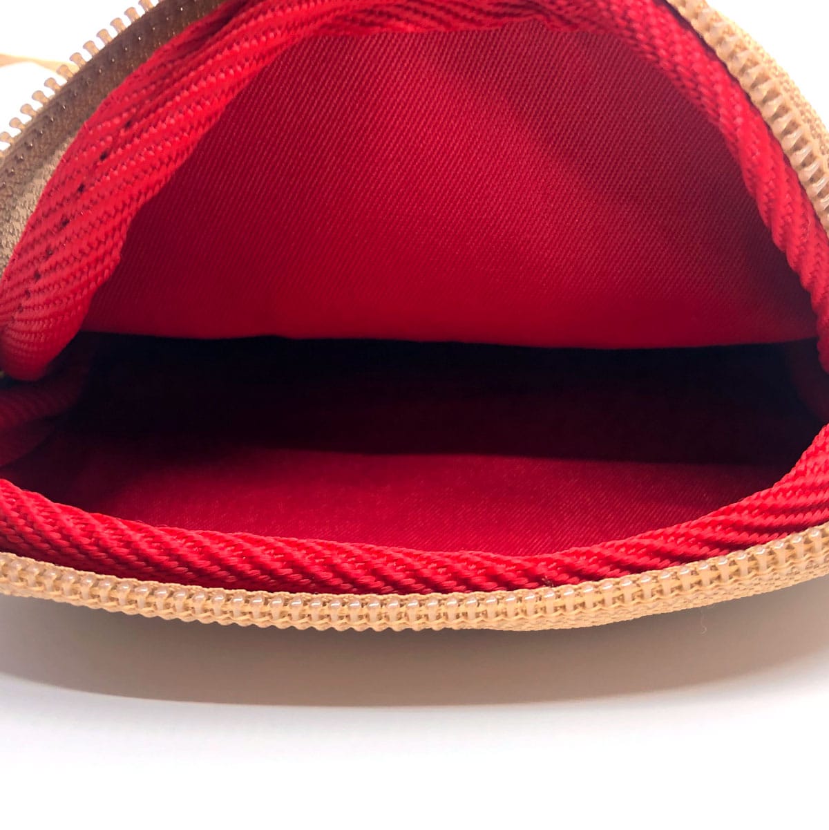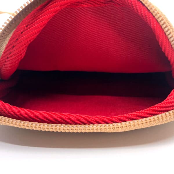 Handytasche aus Kork «Verga» von Artelusa mit Reissverschluss, abnehmbarem Trageriemen sowie rotem Innenleben.
