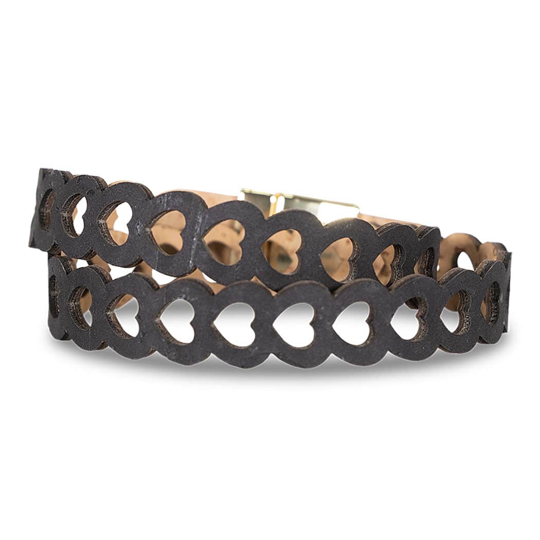 Kork-Armband «Hearty» schwarz von Artipel mit goldenem Magnetverschluss.