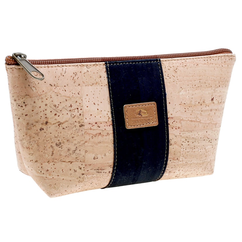 Dieses Kork Etui kann für Kosmetik, Stifte oder als Geldbörse verwendet werden. Hauptfach mit Reissverschluss. Zusätzliches Einschubfach im Innenbereich. Blau eingefärbter Korkstreifen auf der Vorderseite.