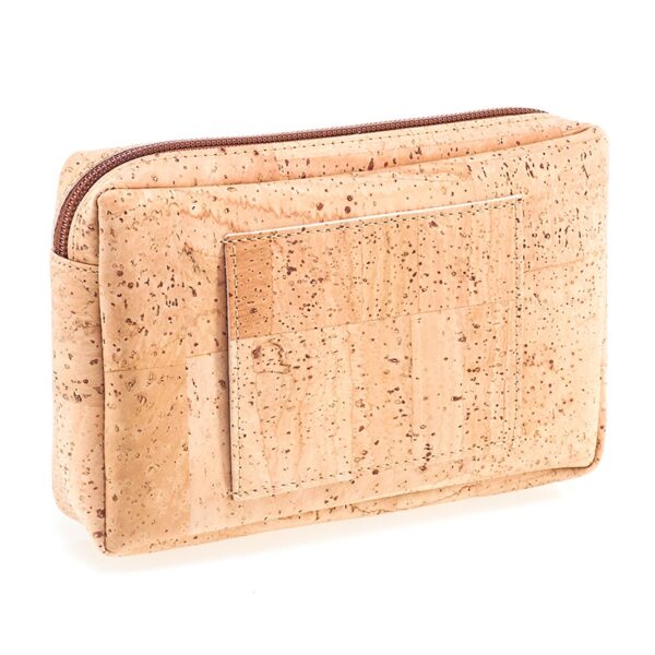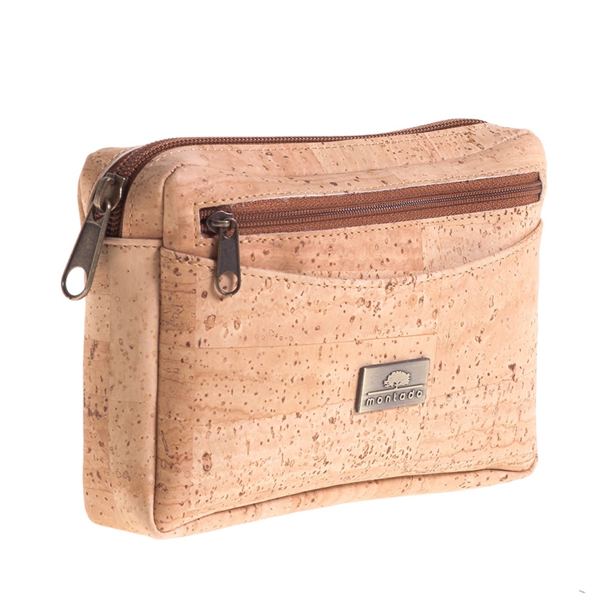 Dieses Kork Etui kann für Kosmetik, Stifte oder als Geldbörse verwendet werden. Hauptfach und Seitenfach mit Reissverschluss. Zusätzliches Einschubfach auf der Frontseite. Lasche auf der Rückseite für die Befestigung am Gürtel.