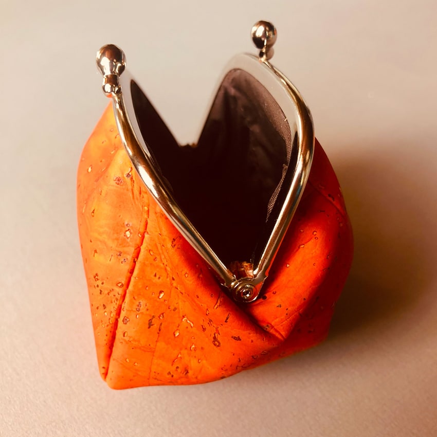 Kork Geldbeutel «Grandma» von Artelusa. Orange eingefärbter Kork mit Verschluss wie zu Omas Zeiten!