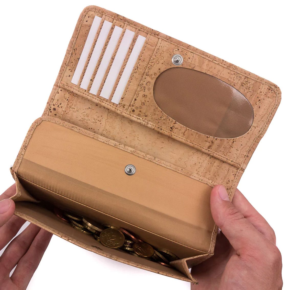 Kork Geldbeutel «Maja» natur mit RFID-Schutz von Simaru. Dieses Portemonnaie bietet viel Platz und ist trotzdem sehr handlich.