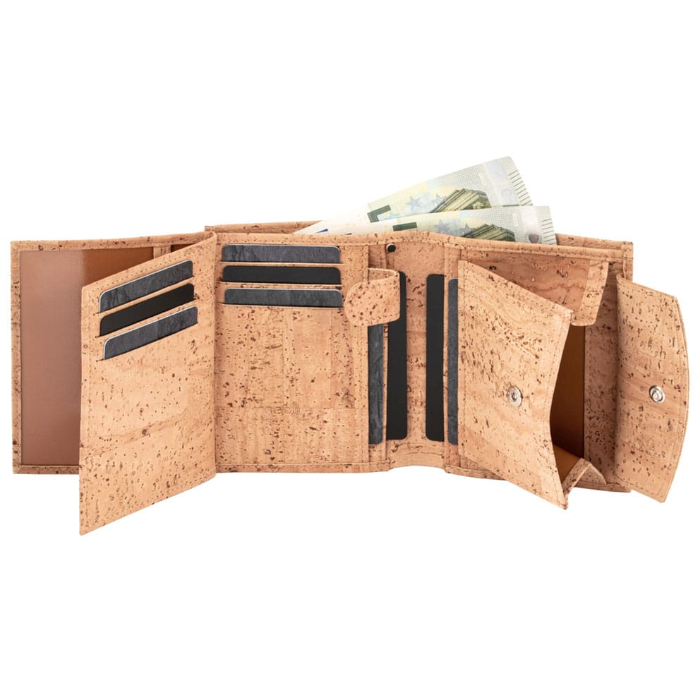 Kork Geldbeutel mit RFID-Schutz von Simaru. Dieser Geldbeutel punktet mit einer kompakten Grösse, angenehmer Haptik sowie viel Platz!