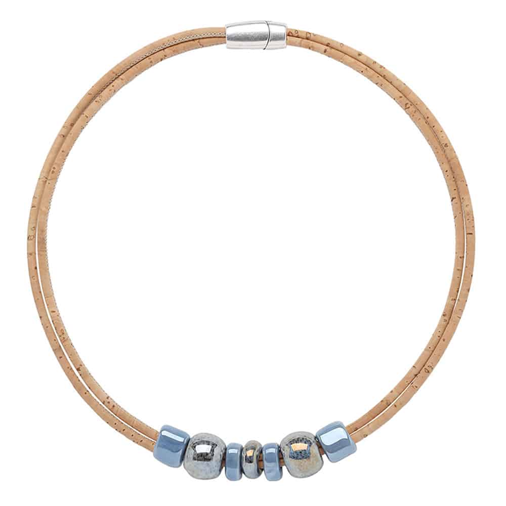 Kork Halskette «Ceramica Azul» von Artelusa mit Keramik sowie Magnetverschluss.