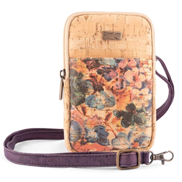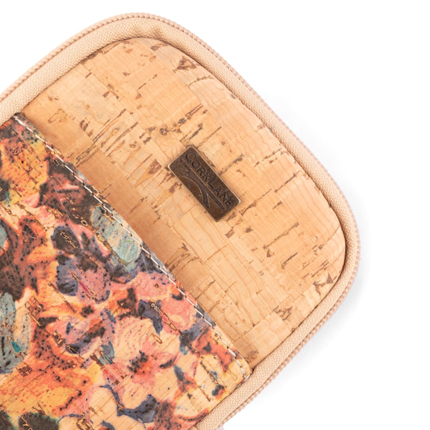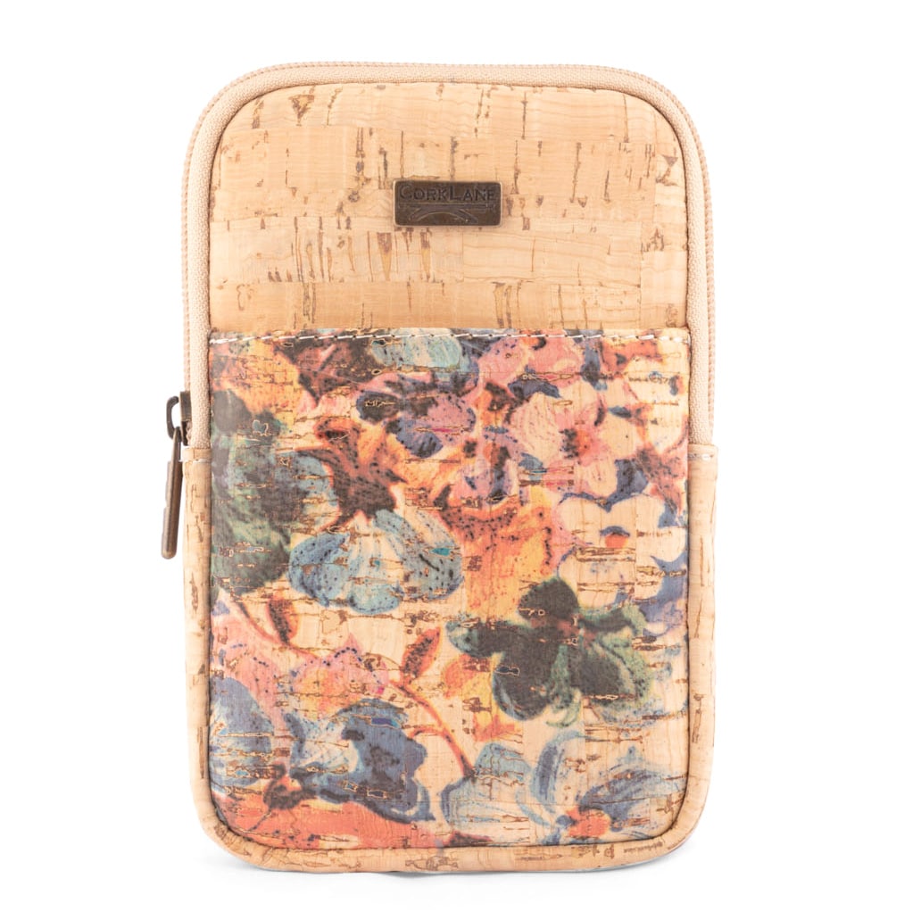 Kork Handytasche «Flowers» von CorkLane. Etui aus Kork mit abnehmbarem Trageriemen. Perfekt geeignet für den Transport von deinem Smartphone!