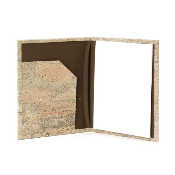 Kork Mappe A6 natur von Artelusa. Kleine Mappe mit Naturkork sowie goldenen Einschlüssen.