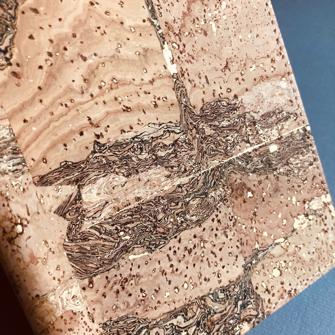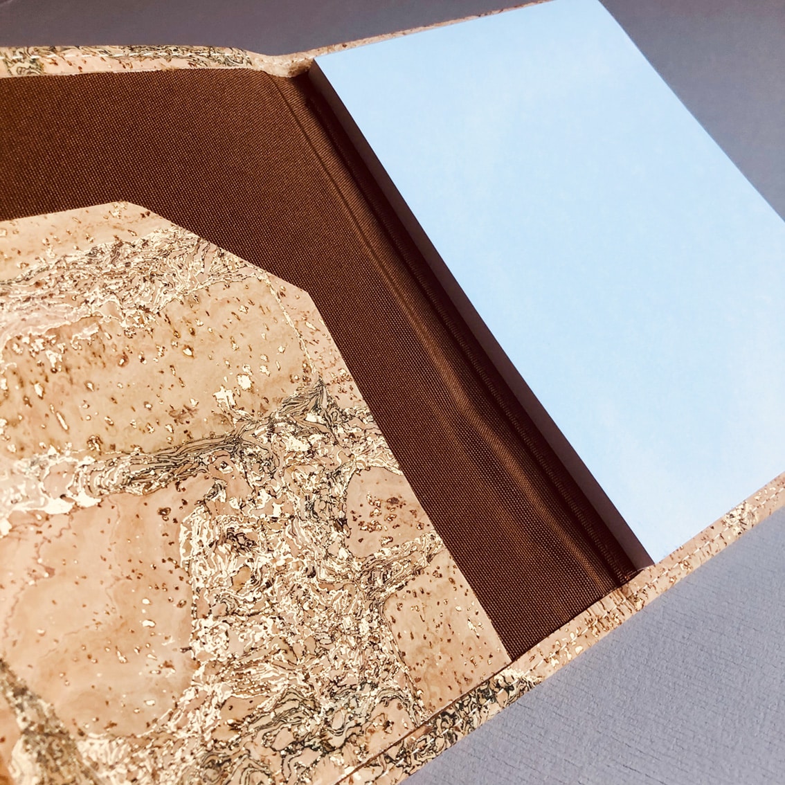 Korkmappe A6 natur von Artelusa. Kleine Mappe mit Naturkork sowie goldenen Einschlüssen.