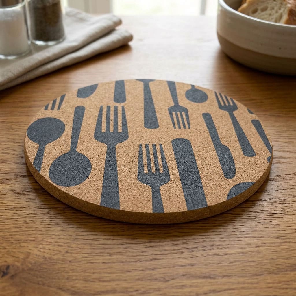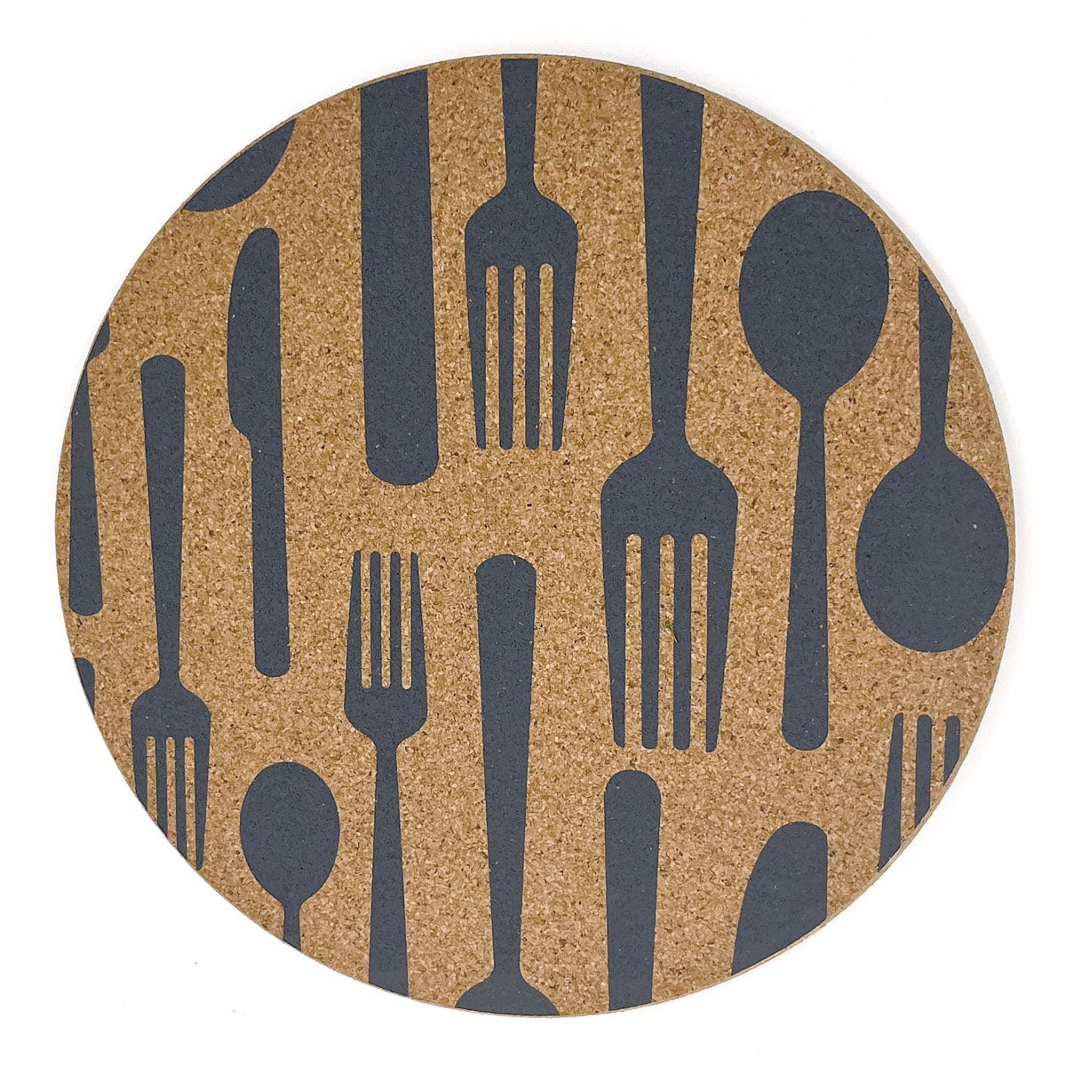 Der Kork-Pfannenuntersetzer «Cuttlery» grau besteht aus hitzebeständigem sowie wasserabweisendem Naturkork. Er ist die perfekte Unterlage für heisse Pfannen, Töpfe oder Auflaufformen.