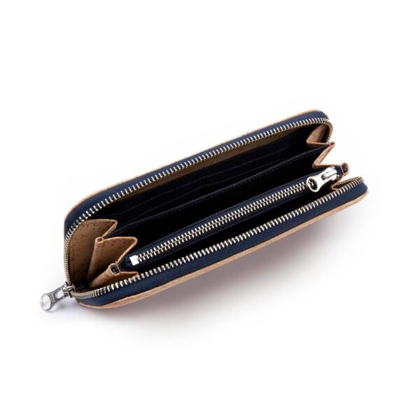 Gefertigt aus Kork und Canvas ist das Kork Portemonnaie «bleed» nicht nur ein echter Hingucker. Es ist dank acht Kartenfächern, einer Kleingeldtasche mit Reissverschluss sowie vier grossen Fächern für Banknoten, auch ein echtes Organisationstalent.