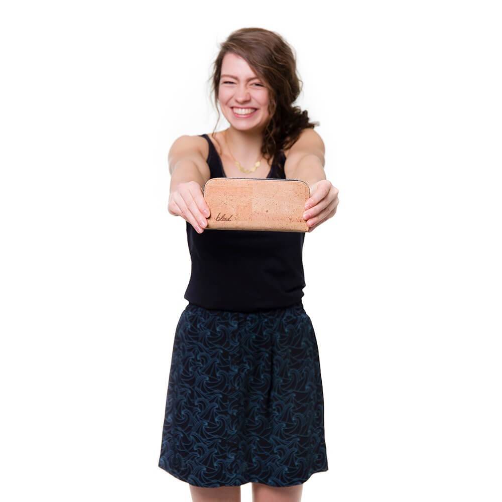 Wir empfehlen dir, dein Kork Portemonnaie «bleed» mit einem feuchten Tuch sowie einem milden Reinigungsmittel zu reinigen.