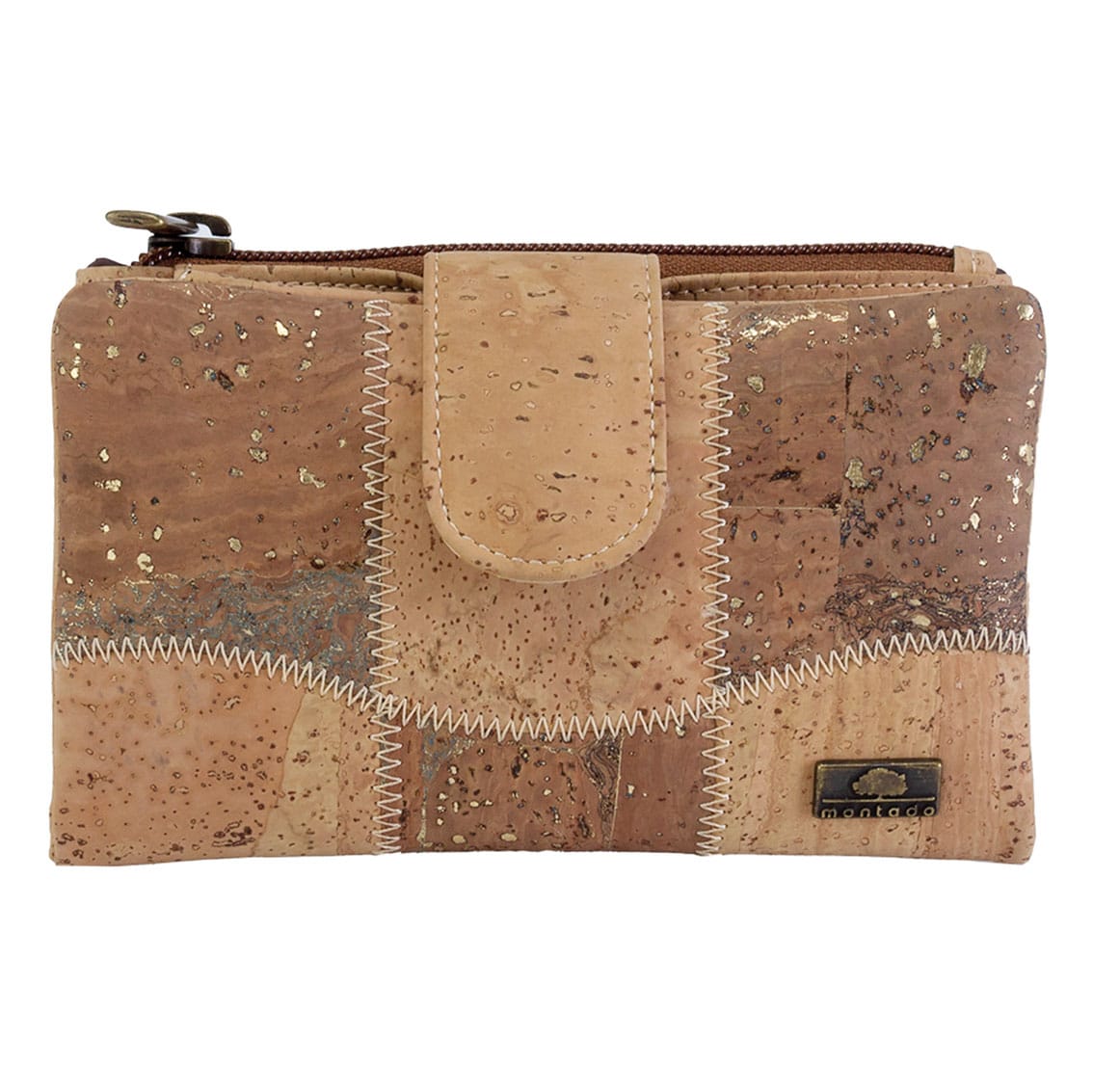 Kork Portemonnaie «Mapa Camel» von Montado. Vegan hergestellter Geldbeutel mit goldenen Einschlüssen sowie Zickzacknähten.