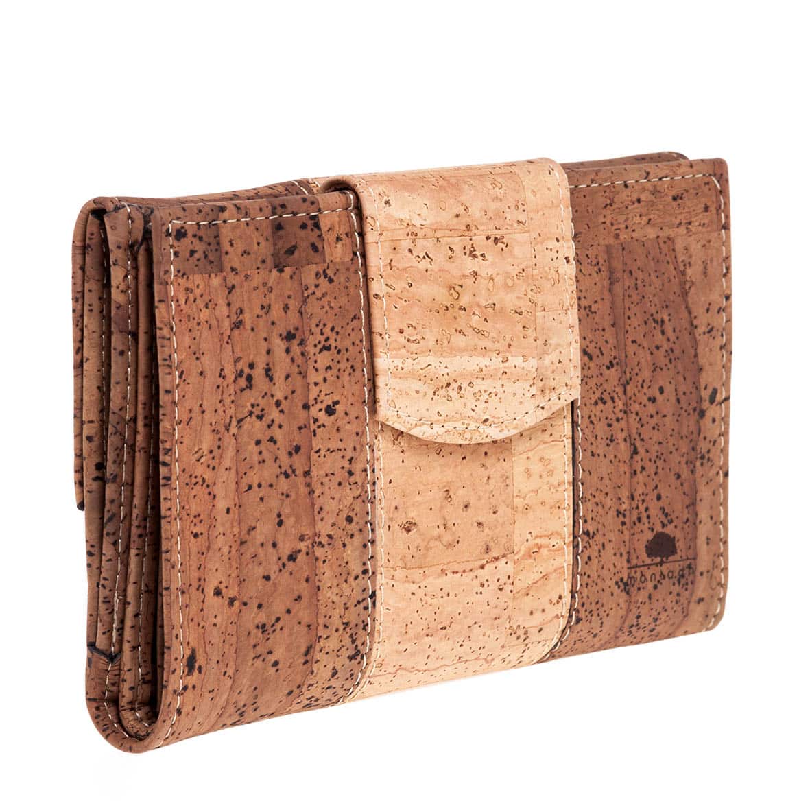 Brieftasche / Portemonnaie aus Kork mit zwei Unterteilungen. 1 Fach für Münzen mit Reissverschluss. 1 Fach für Banknoten und Dokumente. Platz für 12 Karten und 4 weitere Einschubfächer.