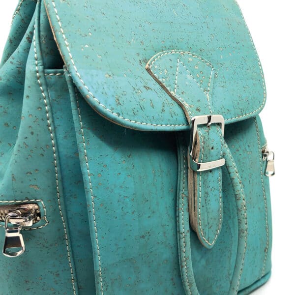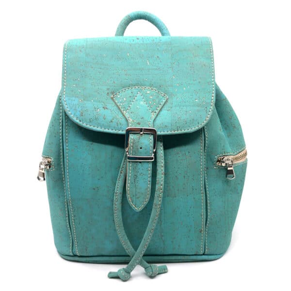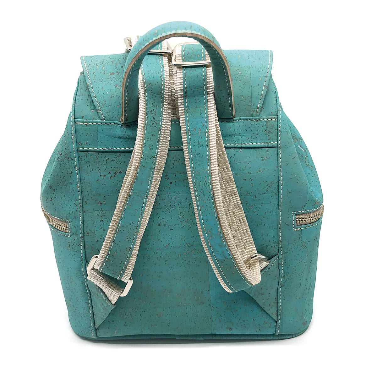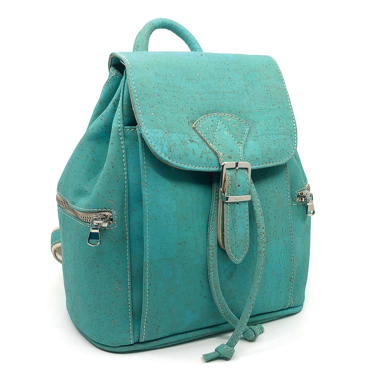 Natürlicher Kork Rucksack «Funchal» türkis mit praktischem Kordelverschluss sowie vielen Fächern.