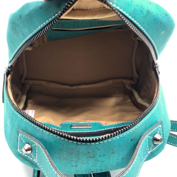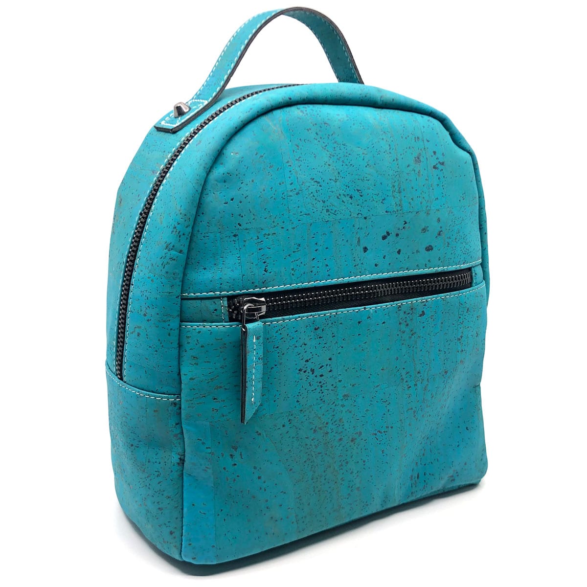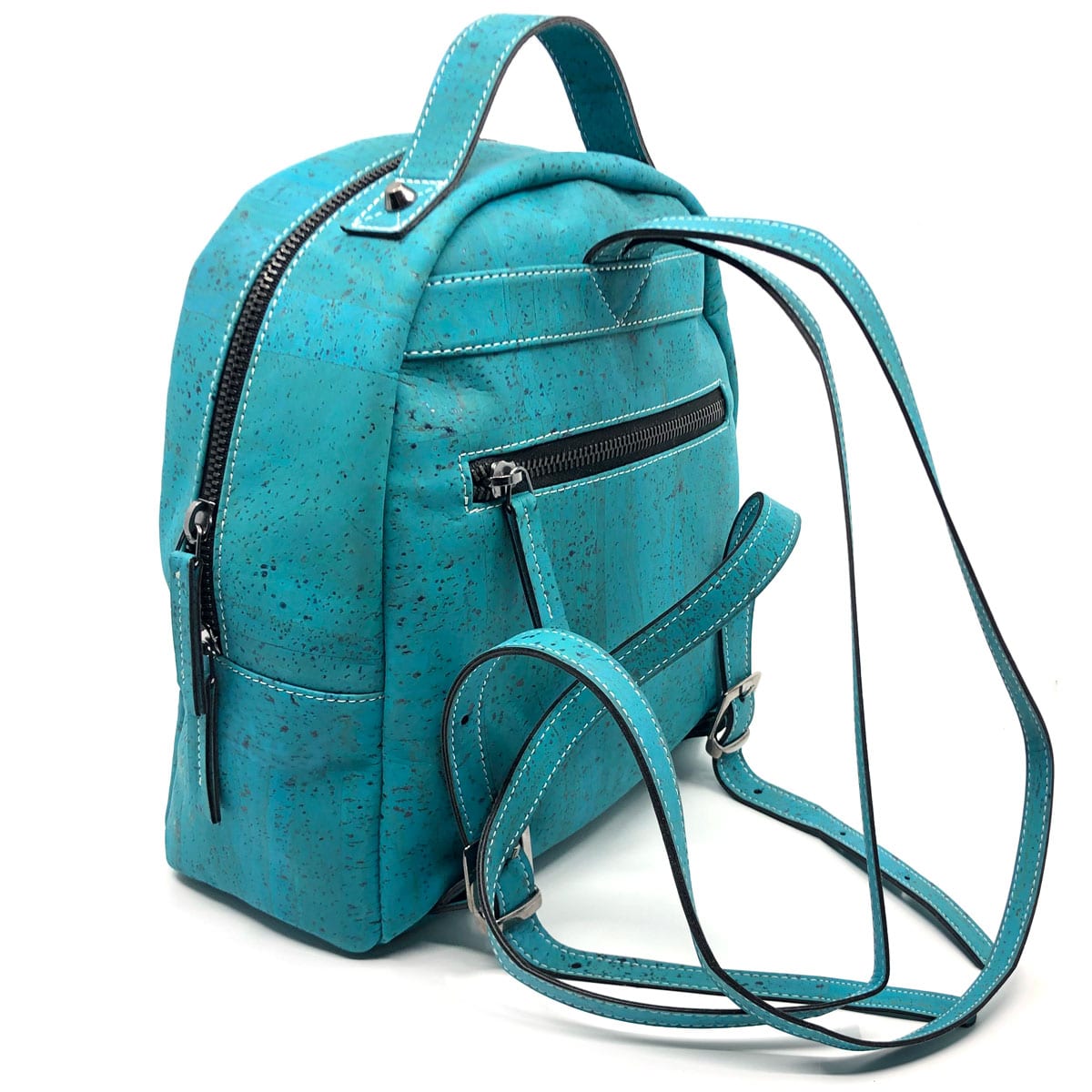 Kork Rucksack «Mirissa» türkis von Marla Pais in kleiner Grösse mit vielen Fächern.