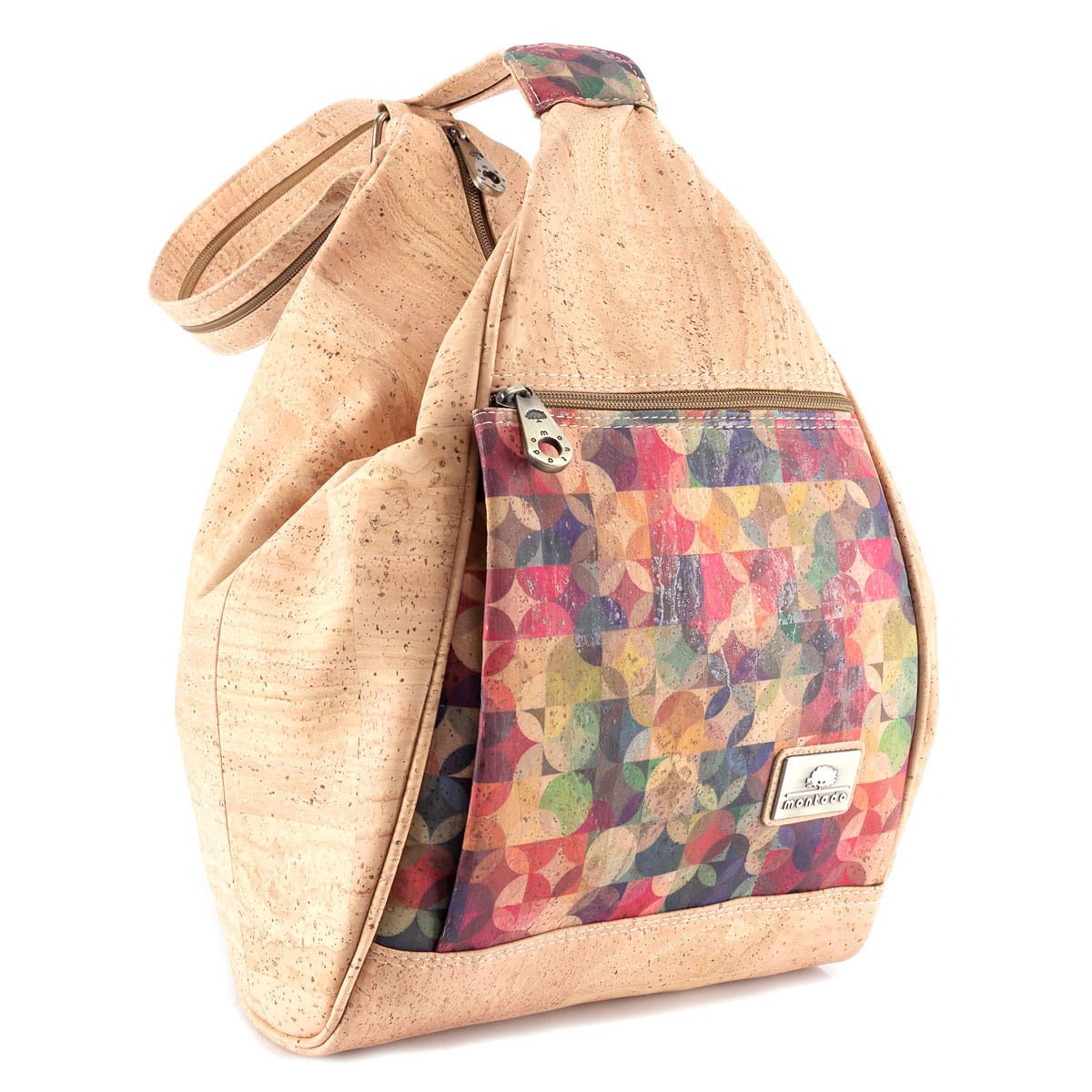 Kork Rucksack «Tayrona» Rainbow von Montado. Dieser clevere Rucksack kann auch als Umhängetasche verwendet werden (siehe Fotos).