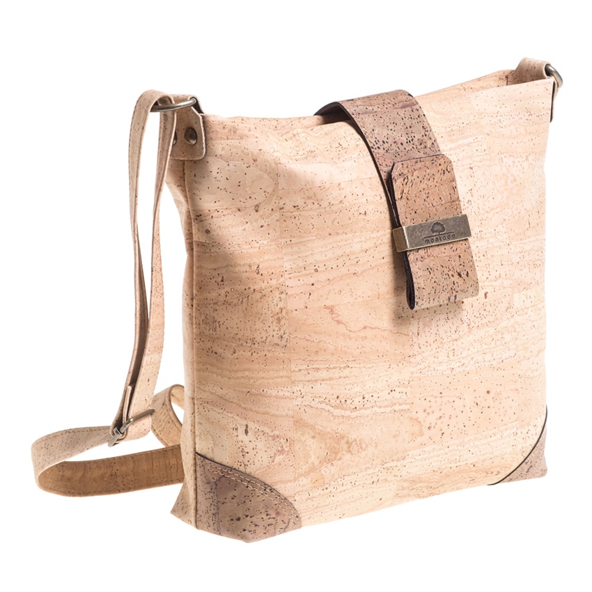 Kork Schultertasche «Tana». Natürliche Crossbody Tasche mit verstellbarem Trageriemen und Doppelverschluss.