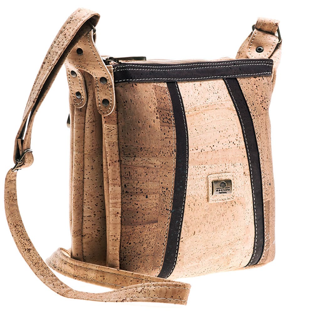 Kork Tasche «Nairobi» von Montado. Vegane Umhängetasche aus Kork mit zwei grossen Hauptfächern mit Reissverschluss.