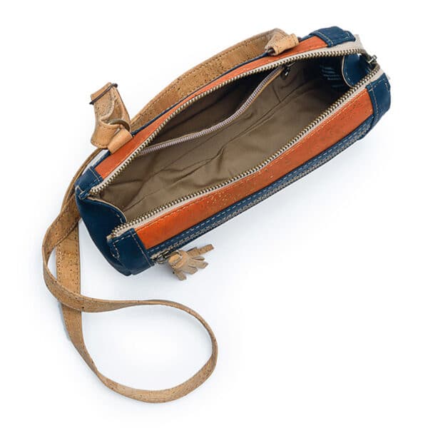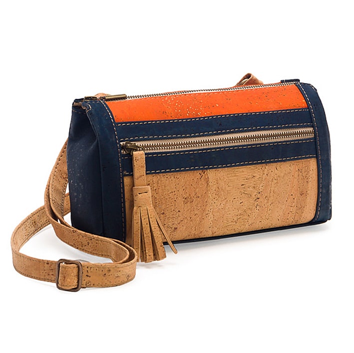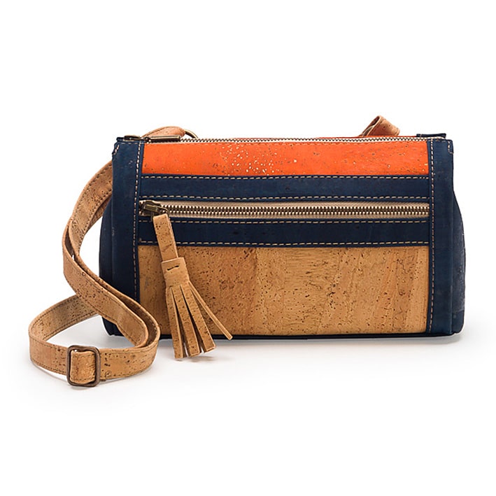 Kork Tasche «Orange» von Artelusa. Naturfarben kombiniert mit leuchtenden Farbtönen. Kann auch als Clutch verwendet werden.