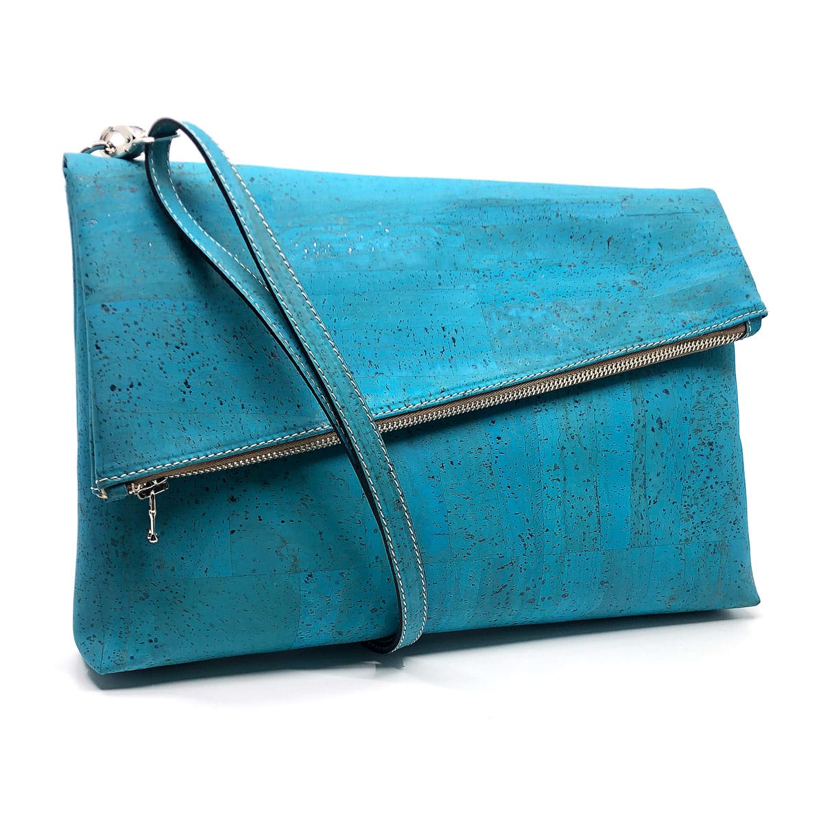 Kork Umhängetasche «Boavista Azul» von Marla Pais mit abnehmbarem Trageriemen.