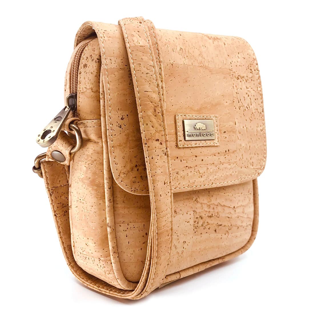 Kork Umhängetasche «Cross Flap» natur von Montado. Praktische Umhängetasche mit Schutzklappe, Einschub- sowie Reissverschlussfächern.