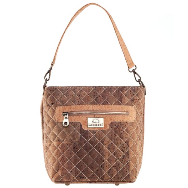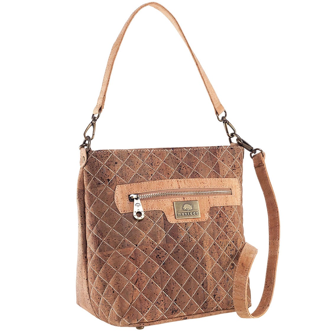 Kork Umhängetasche «Cross Stitch» von Montado mit Kreuznähten sowie Reissverschlussfach.