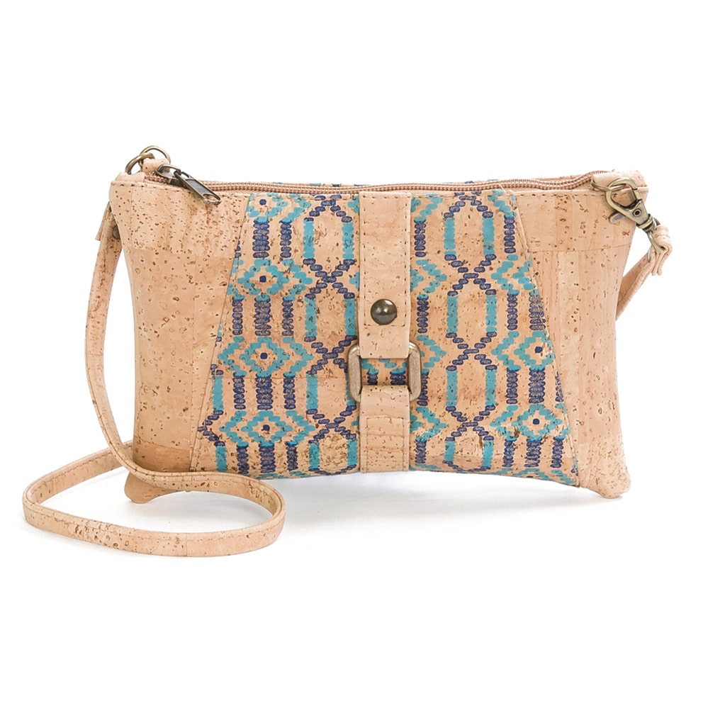 Kork Umhängetasche «Ethnic» von Artelusa. Mit Ethnic-Muster in blauen Fabrtönen. Kann auch als Clutch verwendet werden.