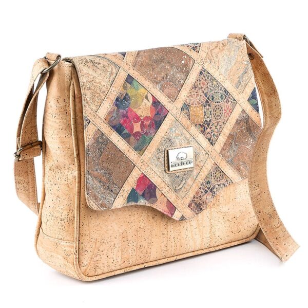 Kork Umhängetasche «Losango Flap» von Montado mit verstellbarem Trageriemen und Schutzklappe.