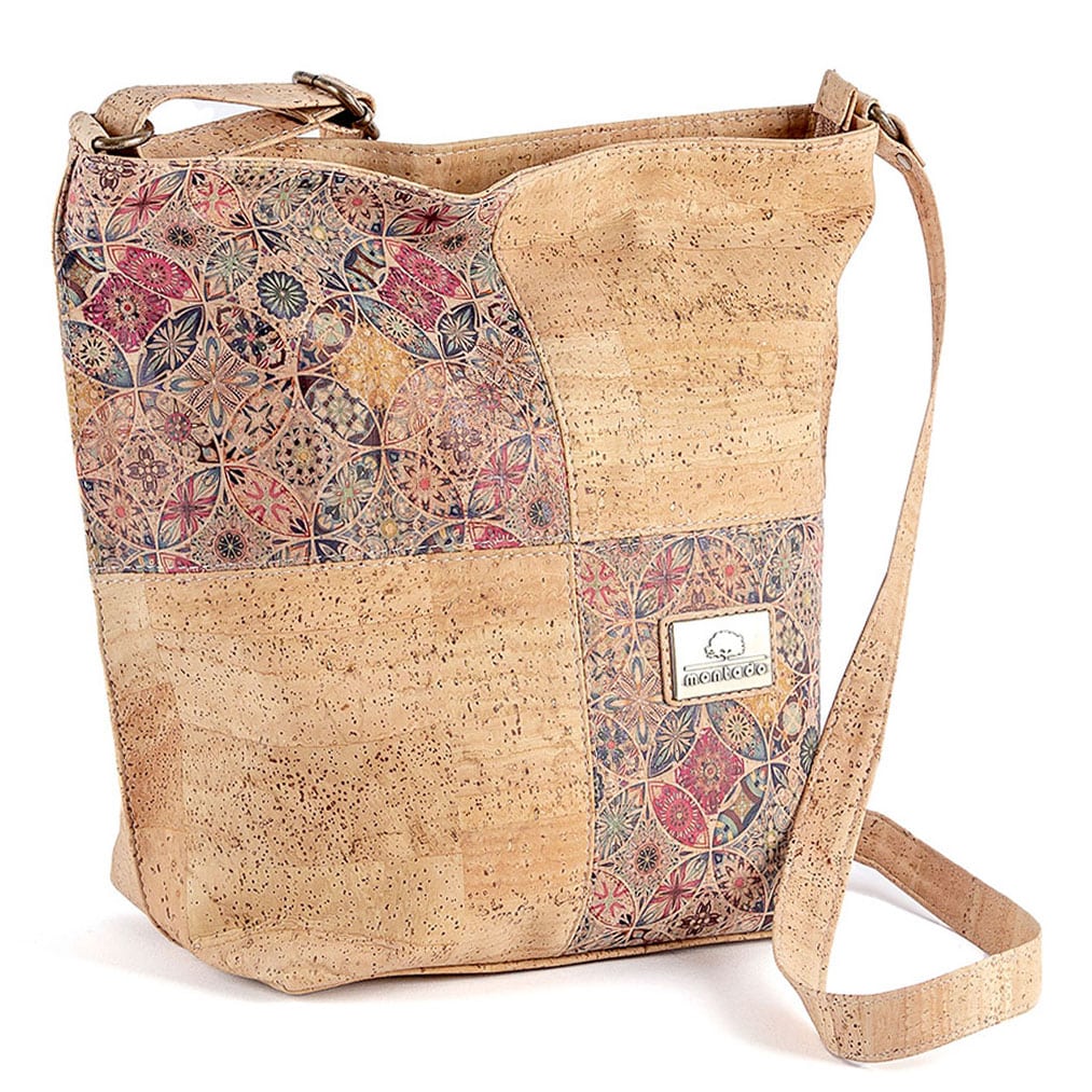 Kork Umhängetasche «Quarto» Mandala von Montado mit verstellbarem Trageriemen und Reissverschlussfach.